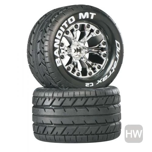 This is a pair of Duratrax Bandito MT C2 Tires and Wheels.