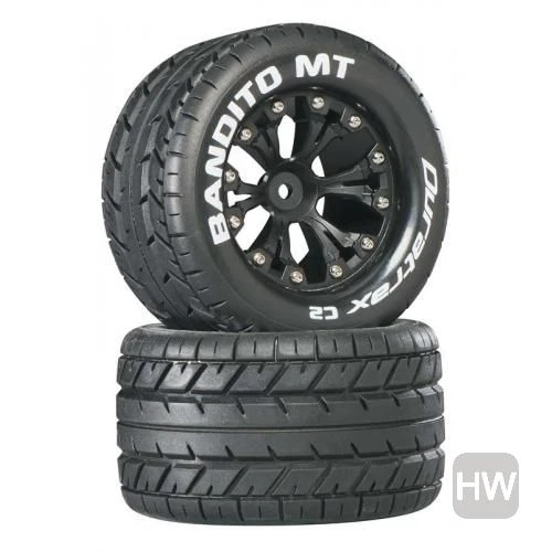This is a pair of Duratrax Bandito MT C2 Tires and Wheels for the rear of the EP Stampede 2WD, EP Rustler 2WD and EP Monster Jam 2WD.