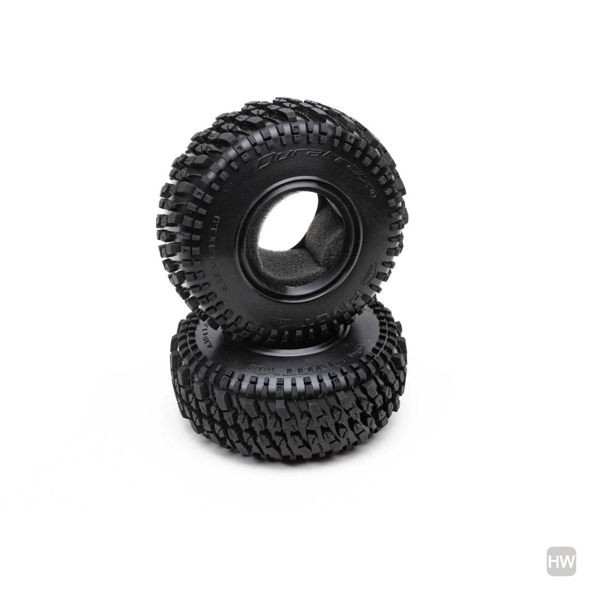 These Duratrax® PIVOT front and rear tires are Class 1 (4.19″ outer diameter) size for maximum scale appearance, with a 1.9″ inner tire/outer wheel diameter. Made from super-soft C3 compound rubber with an aggressive tread that bites into loose or muddy surfaces, these tires provide exceptional gripping power for climbing over slippery rocks and getting past the toughest obstacles. Sold in pairs with foam inserts included.